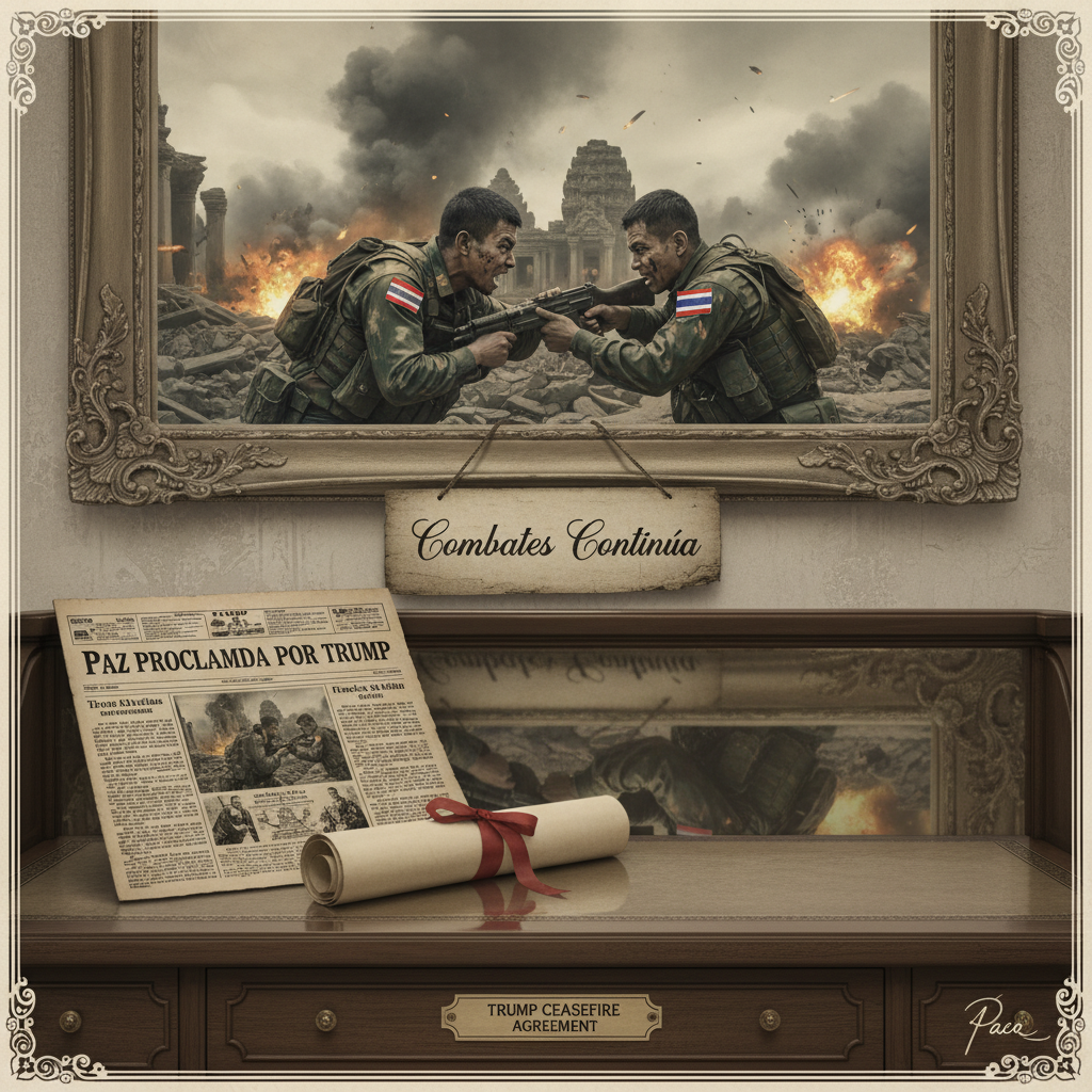 Qué reconfortante es despertar a la noticia de que la paz, ese anhelo milenario, puede ser, en ocasiones, tan accesible como un tuit presidencial. La reciente declaración del ex-presidente Donald Trump sobre un alto el fuego entre Tailandia y Camboya nos ofreció, por unas preciosas horas, la grata ilusión de que la diplomacia de alto nivel posee una magia instantánea, una especie de conjuro transcontinental capaz de silenciar los cañones con la mera fuerza de la palabra. Una vez más, el mundo pudo regocijarse ante la capacidad de un líder para dictar el cese de hostilidades, al menos en teoría.