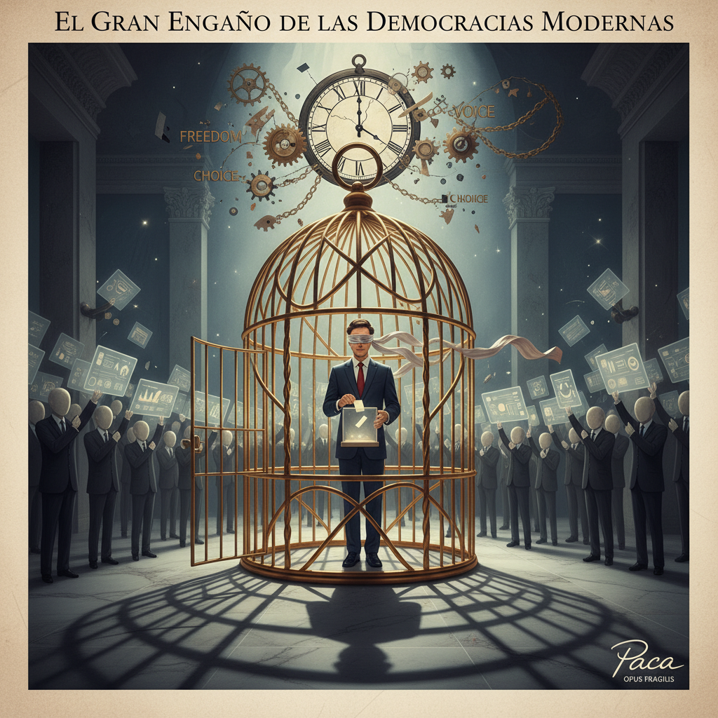 ## La Grácil Ilusión del Siglo XXI En la vasta y ruidosa sinfonía del discurso contemporáneo, pocos conceptos resuenan con tanta piadosa solemnidad como el de la democracia moderna. Se nos presenta, con incansable didactismo desde las cátedras universitarias hasta los foros públicos, como la cima inexpugnable de la organización…